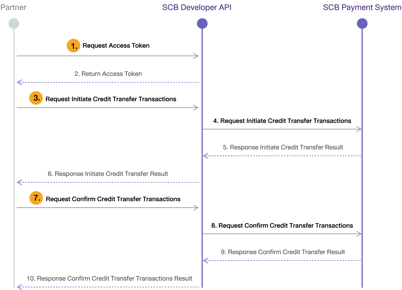 | 3 | Initiate Credit Transfer Transactions | POST /v1/payment/transfer/fcd/credit/initiate |